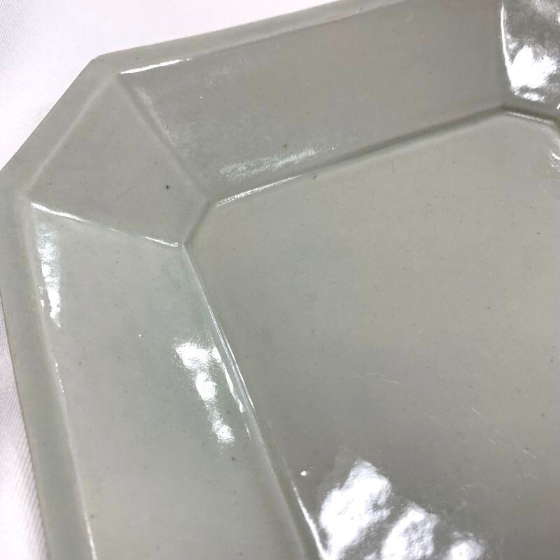 【美品】作家 角田淳 すみ切り長方皿 灰釉 27cm 大 すみ切り 隅切り 長方皿 (約27cm×20cm)/皿 プレート 作家もの 陶器 磁器 角田淳さん