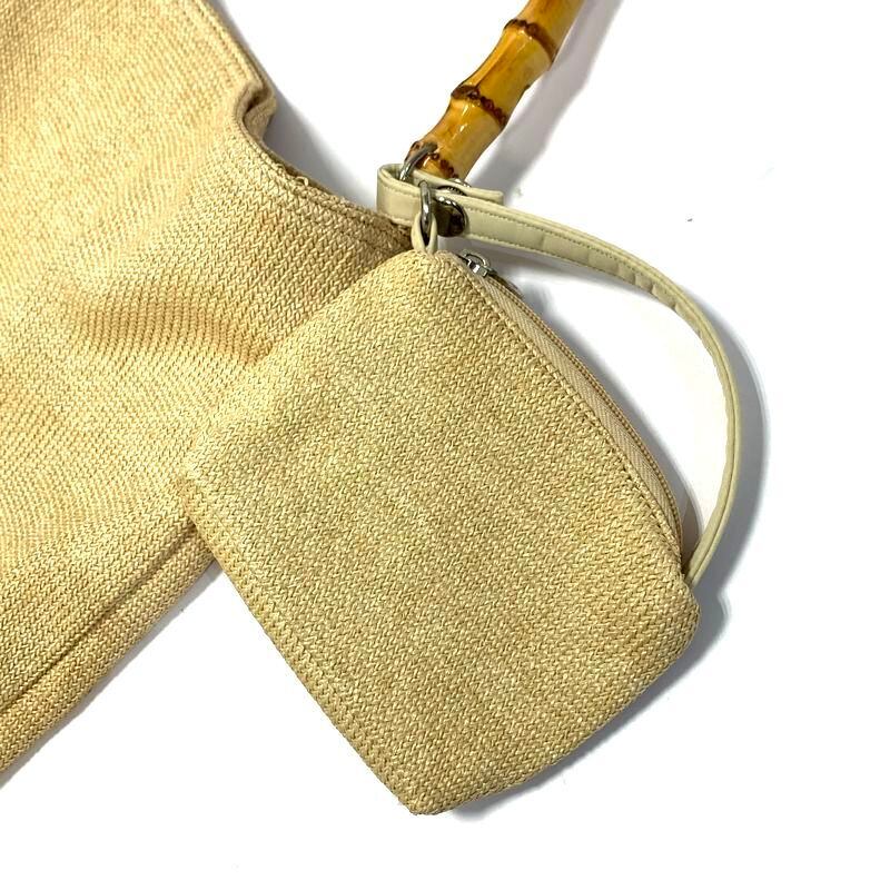 バンブーハンドル ラフィア トートバッグ ミニポーチ付