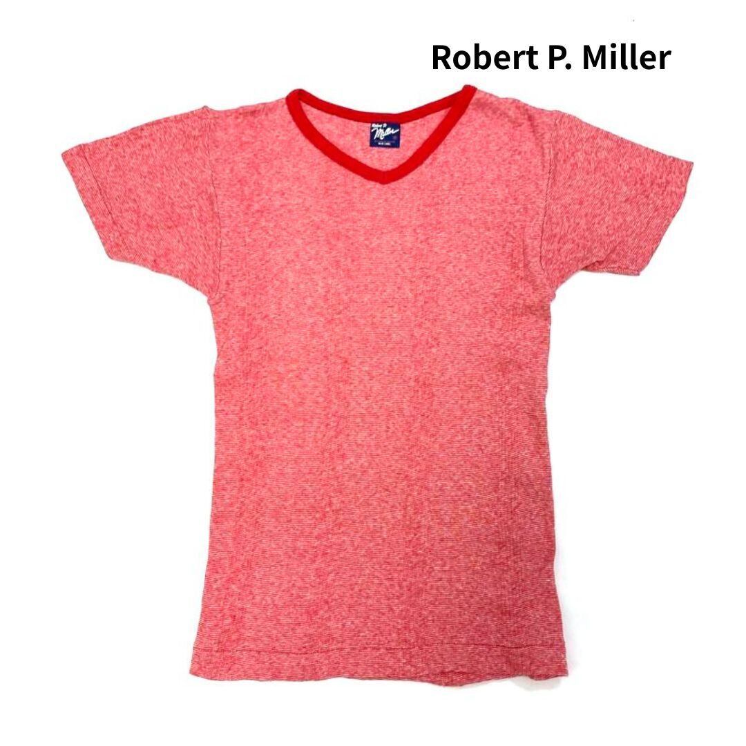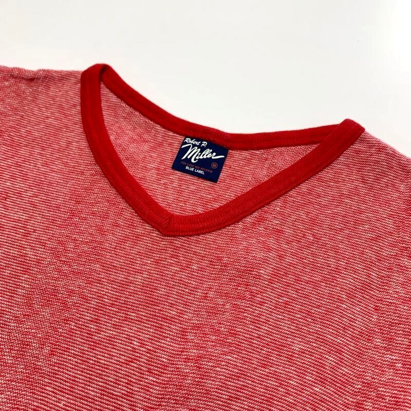 送料無料【美品】Robert P. Miller ロバートピーミラー ミラー ボーダー リンガー Vネック 半袖 Tシャツ レッド M/カットソー トップス