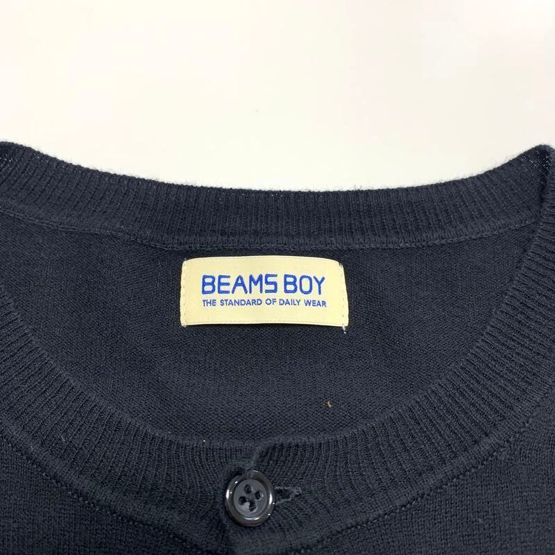 BEAMS BOY ビームスボーイ 14ゲージ エンブロイダリー カーディガン BB 刺繍 ブラック 黒 size:0/シンプル ニットカーディガン セーター