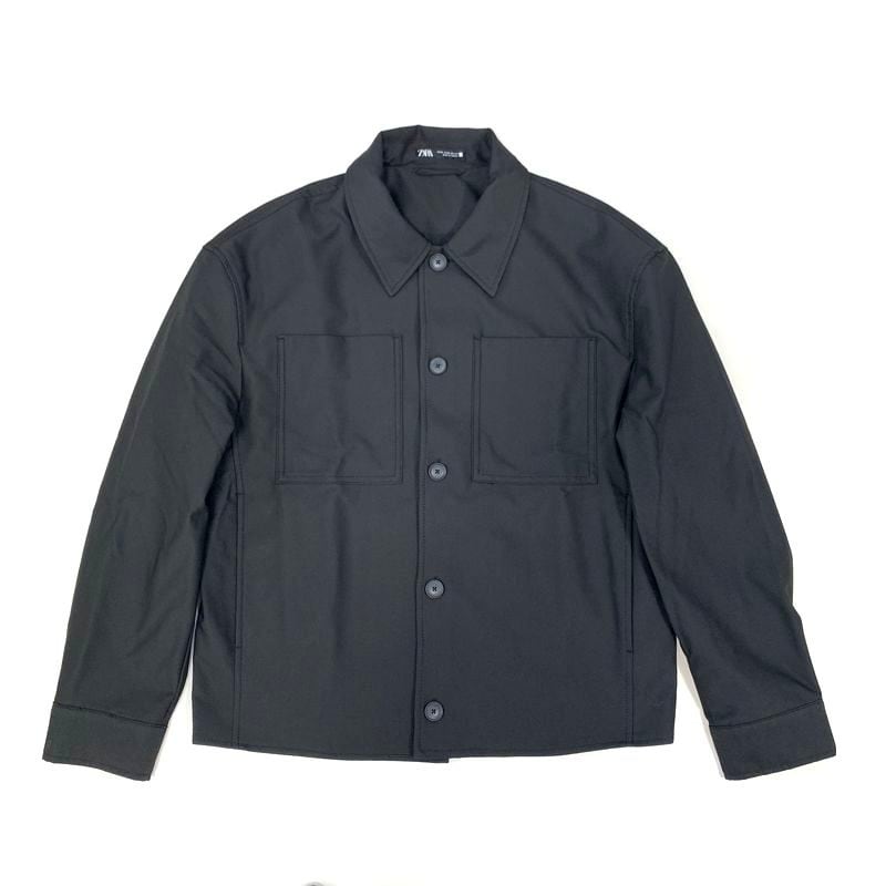 ZARA ザラ BOXY FIT OVERSHIRT オーバーシャツ ポケット シャツジャケット ブラック 黒 メンズ size:M/ジャケット ブルゾン ボックス