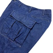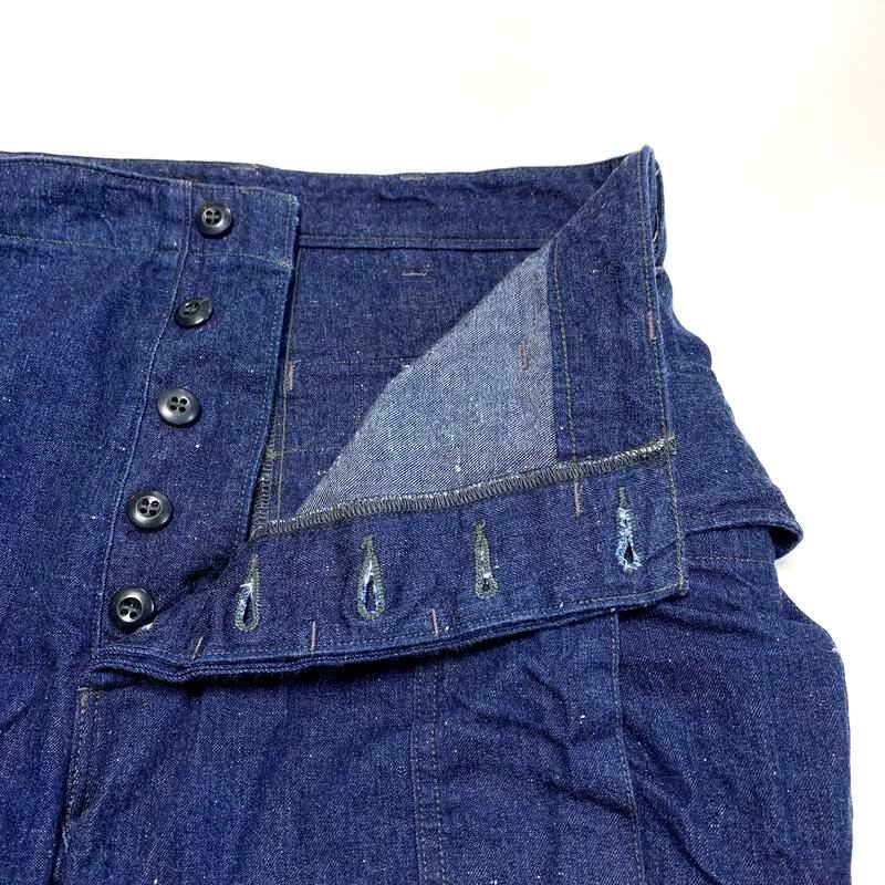 11ozのネップインディゴデニムは、オリーブ系のステッチにより、全体的にシックな印象。定価¥20900(税込)。
