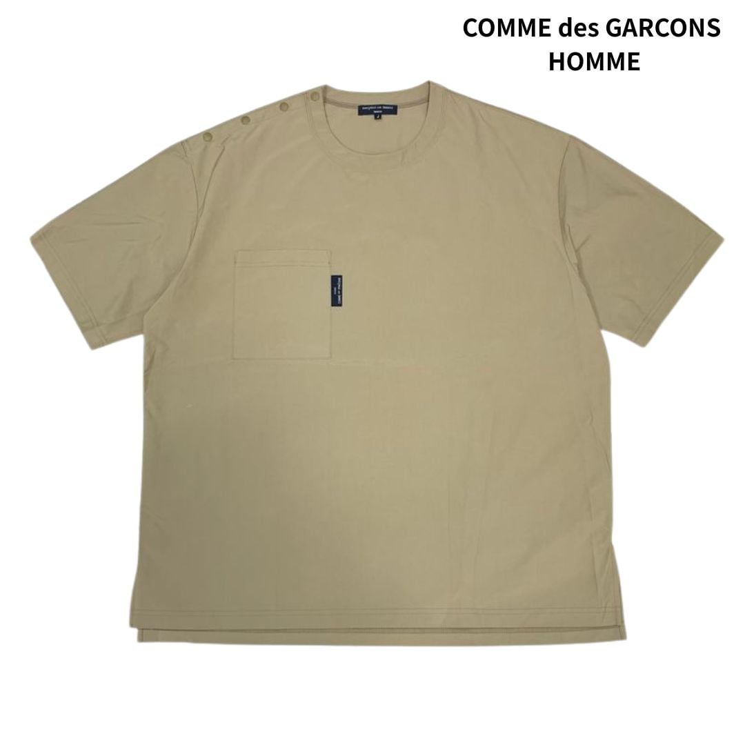 【美品】COMME des GARCONS HOMME コムデギャルソン オム エステル ナイロンツイル ポケット 半袖 シャツ/AD2020 ベージュ size:L/Tシャツ