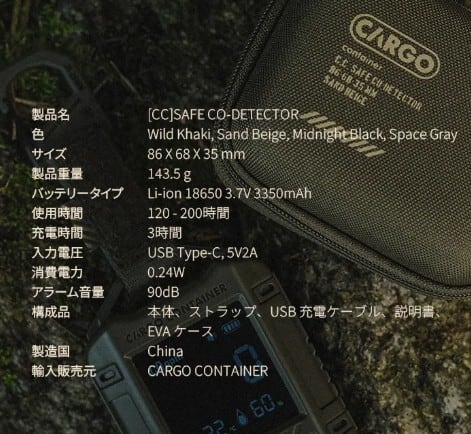 【美品】数回使用 CARGO CONTAINER カーゴコンテナ SAFE CO DETECTOR SAND BEIGE ベージュ/ポータブル 一酸化炭素チェッカー キャンプ ギア