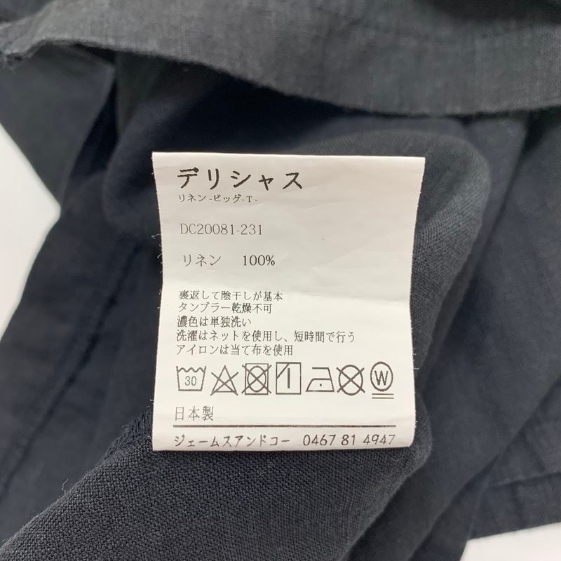 DELICIOUS デリシャス 麻 リネン クルーネック Tシャツ ブラック size:L/クルー 半袖 カットソー トップス プルオーバー JAMES ジェームス