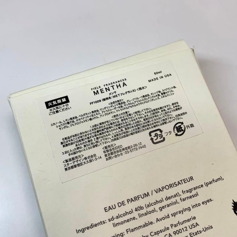 FIELE FRAGRANCES フィエールフレグランス MENTHA(メンサ) EAU DE PARFUM 50ml オードゥ パルファム F1009 国内正規/フレグランス EDP 香水