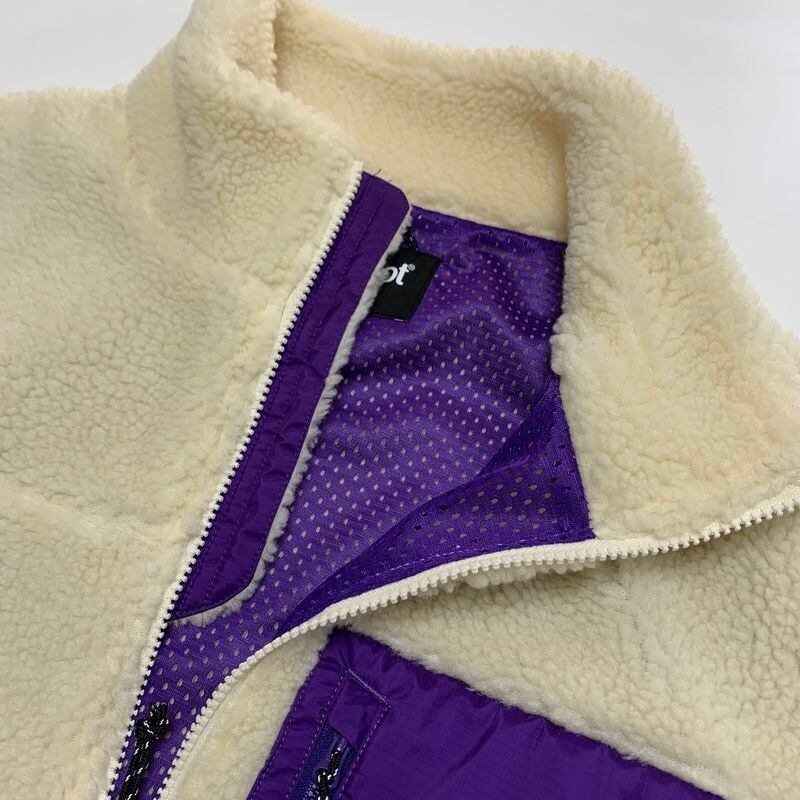 素材にフリースボアを使用した裏地メッシュ付きのフルジップジャケット。