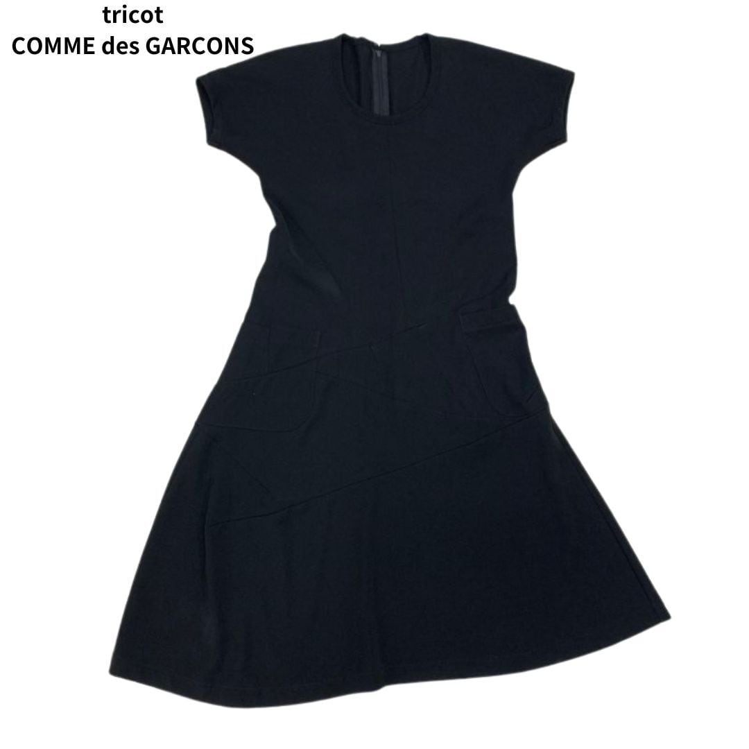 90s tricot COMME des GARCONS トリコ コムデギャルソン 半袖 切替 パッチワーク デザイン フレア ロング ワンピース エステル 黒/ワンピ