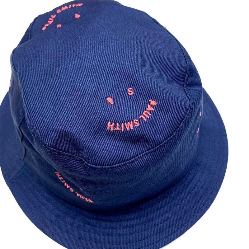 【美品】PS Paul Smith ピーエス ポールスミス Happy バケットハット 140306 BHAT ロゴ 刺繍 ハット ネイビー FREE/バケハ 帽子 キャップ