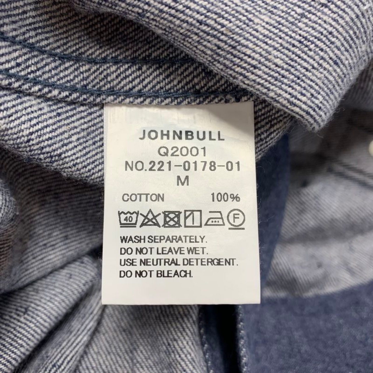 【美品】JOHNBULL ジョンブル THE NEW DENIM PROJECT デニムジャケット Gジャン Q2001 M/ジャケット ブルゾン ジージャン ユニセックス