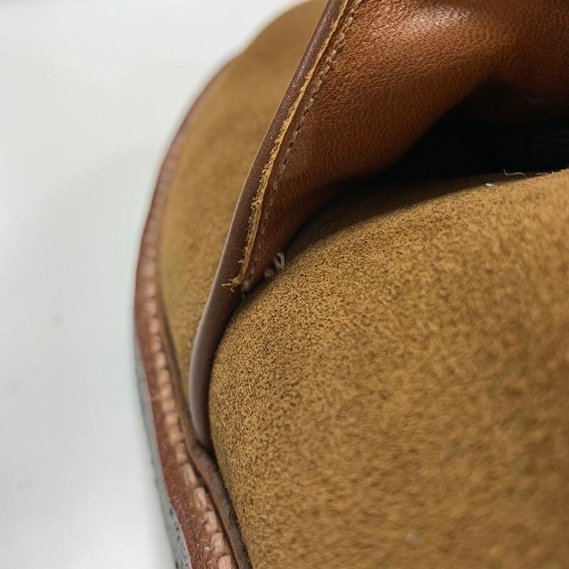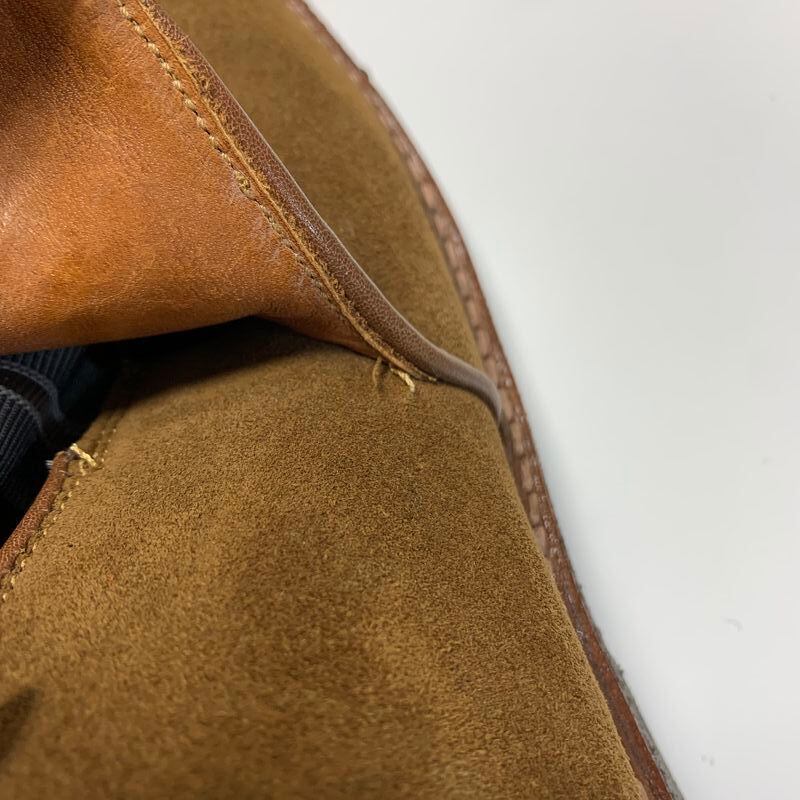 靴の内側に汚れが数ヶ所あります。側面のステッチに少しゆるみとほつれがみられます。※画像参照。