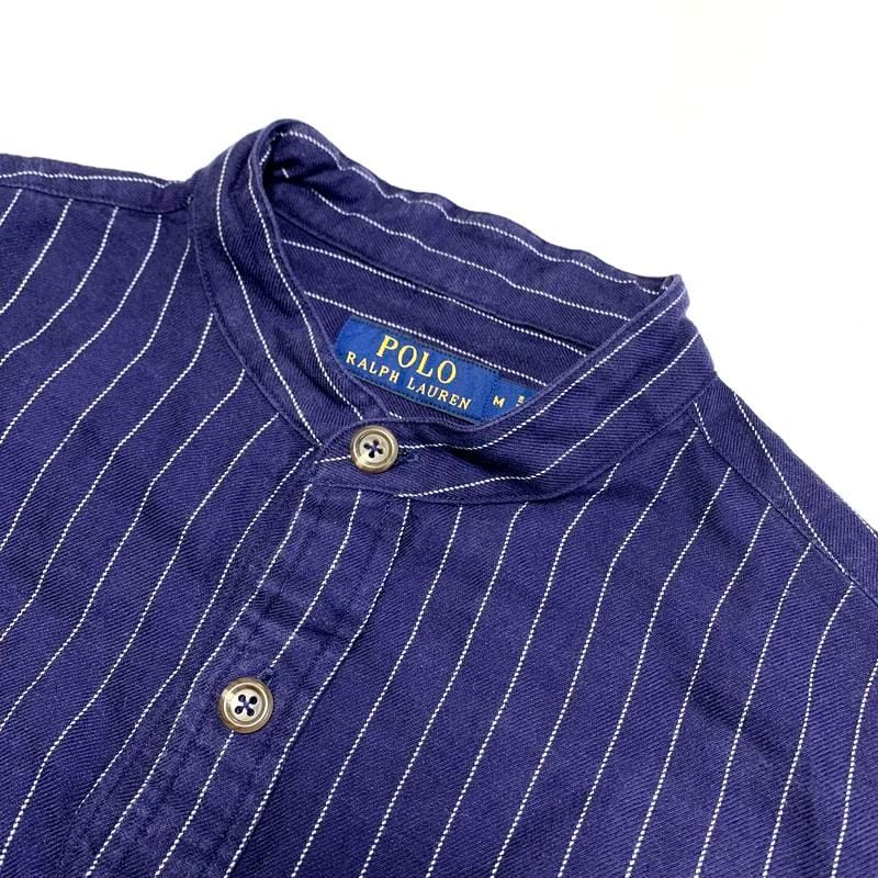 POLO RALPH LAUREN ポロ ラルフローレン リネン ストライプ スタンドカラーシャツ 長袖 シャツ ネイビー size:M 国内正規/ラルフ ローレン
