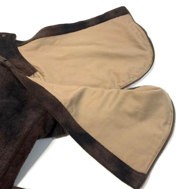 ”サビ”イメージのムラ染めを施したメルトン生地を使用した1着。