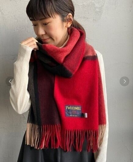 Lambswool Knee Rug マフラー チェック フォール レッド スカーフ ショール ブランケット