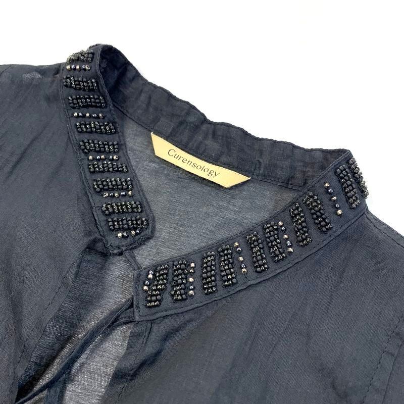 【美品】Curensology カレンソロジー 24AW オーガンビジュー ブラウス ブラック/オーガンジー ビジュー 装飾 ノースリーブ シアーシャツ