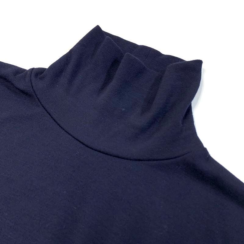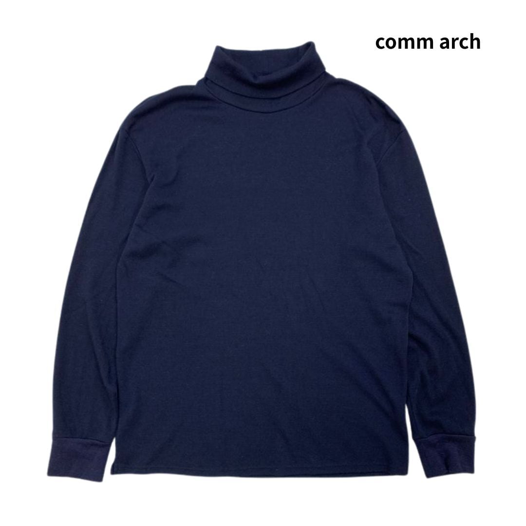 【美品】comm.arch コムアーチ Super 120's Merino メリノウール ハイネック プルオーバー ウール タートルネック カットソー 紺 3/長袖