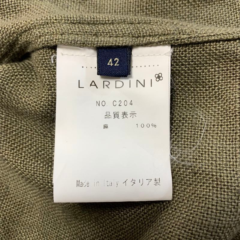 【美品】定価5.9万 LARDINI ラルディーニ 麻 リネン アーミー シャツジャケット サファリシャツ オリーブ 42/ミリタリー シャツ ジャケット