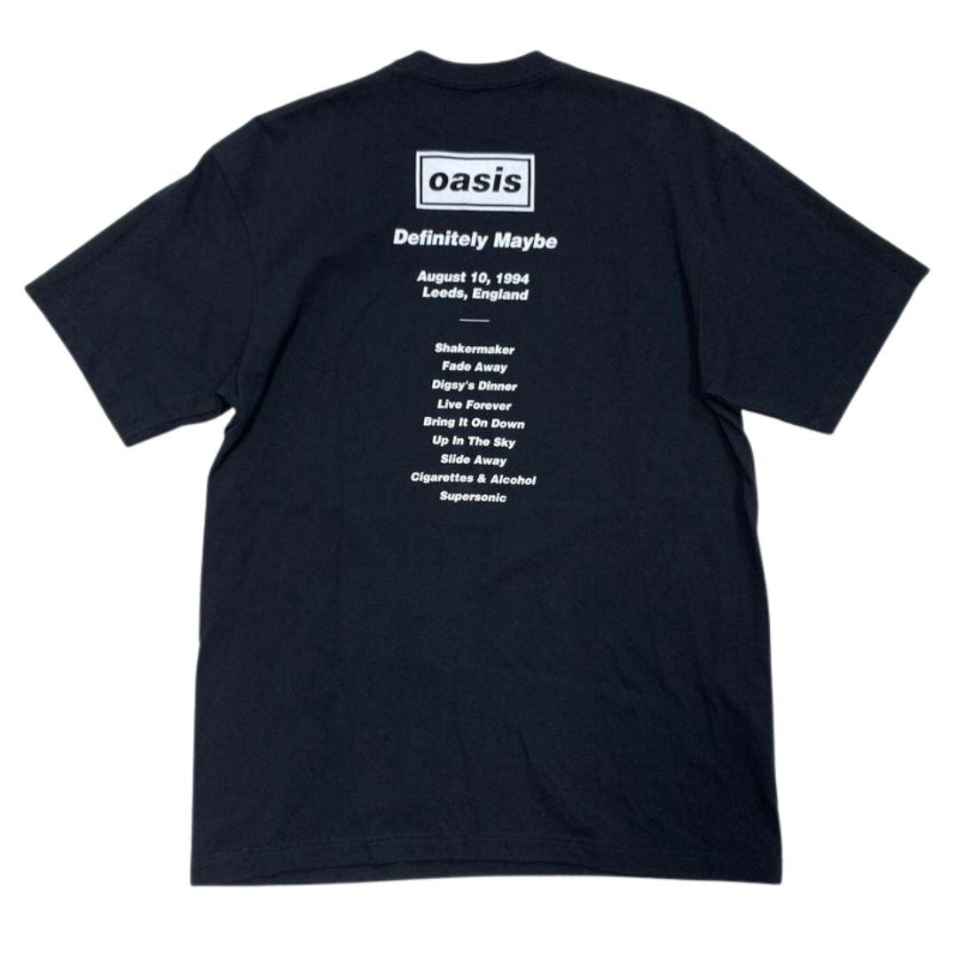 過去にoasisがライブを開催する際に使用していたポスターのグラフィックを、Tシャツのフロント部分に落とし込み、バックには、各ライブで披露された数々の名曲をセットリストのように記載したデザイン。