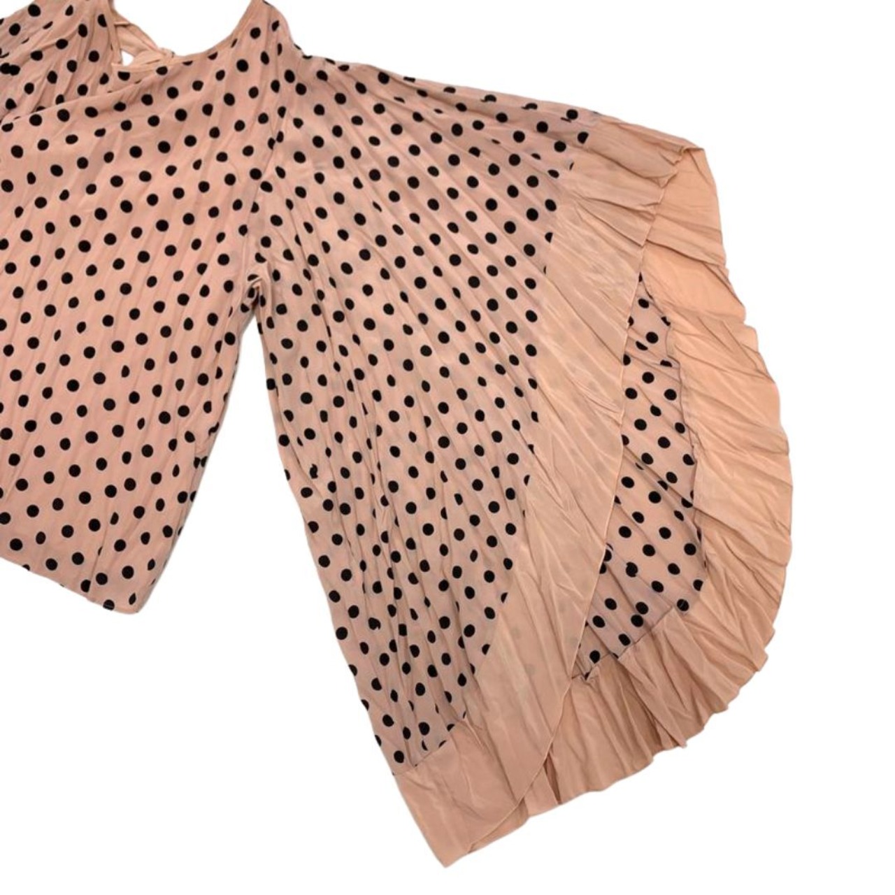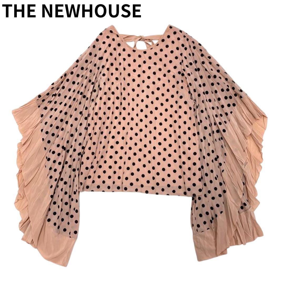 【美品】THE NEWHOUSE ニューハウス 22SS GYPSET RUCKLE ジプセット ラッフル ドット フレアスリーブ ブラウス ピンク XS/カットソー 水玉
