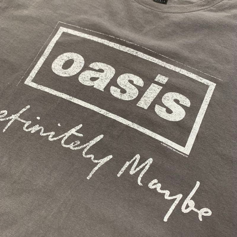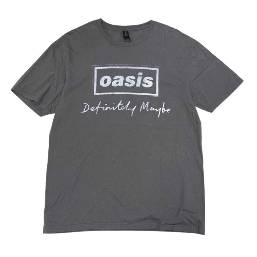 【美品】Lサイズ OASIS オアシス Definitely Maybe Distressed Text Logo T-Shirt ロゴ Tシャツ チャコールグレー /復刻 レプリカ バンドT