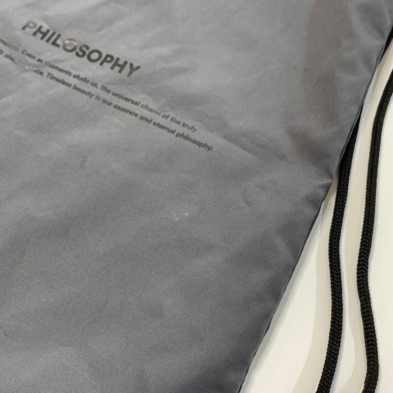 マットなダブルクロスのポリエステルシェルにUNION™のロゴと裏面にもフィロソフィーのメッセージ入り。ドローストリングでバックパックとしても、ショルダーバッグとしても使用可能。