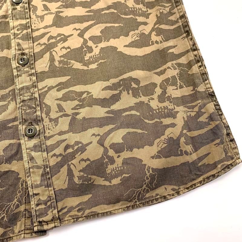 00s vintage HG HYSTERIC GLAMOUR ヒステリックグラマー HEAVY SMOKER SKULL CAMO スカル 迷彩 半袖 ワークシャツ M/シャツ カモフラージュ