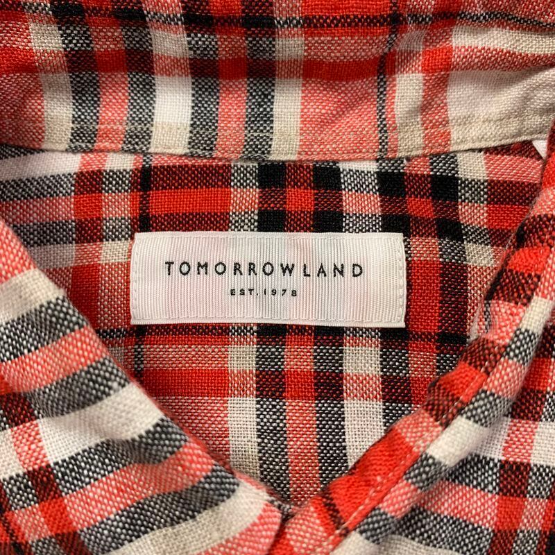 【美品】TOMORROWLAND トゥモローランド 麻 リネン チェックシャツ レッド 赤 メンズ/長袖シャツ シャツ トップス チェック 春夏