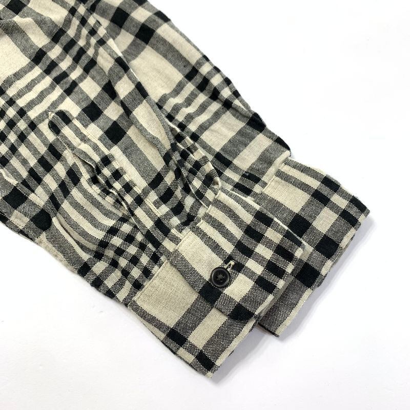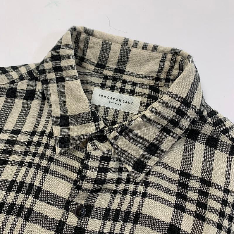 【美品】TOMORROWLAND トゥモローランド 麻 リネン チェックシャツ 長袖 シャツ 黒×ベージュ メンズ/春夏 ドレスシャツ カジュアル
