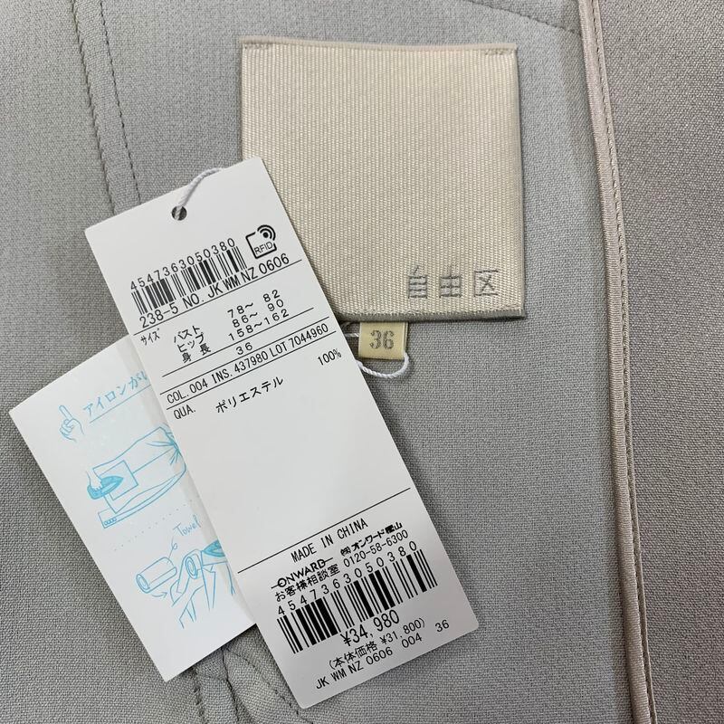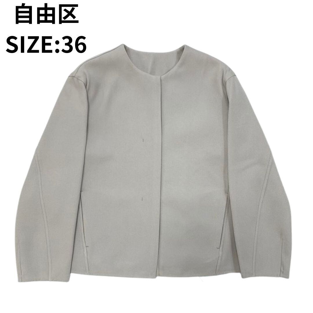 【新品】定価3.5万 自由区 洗える ライトダブルクロス ノーカラージャケット サンドベージュ 36 タグ付/ オンワード ジャケット フォーマル
