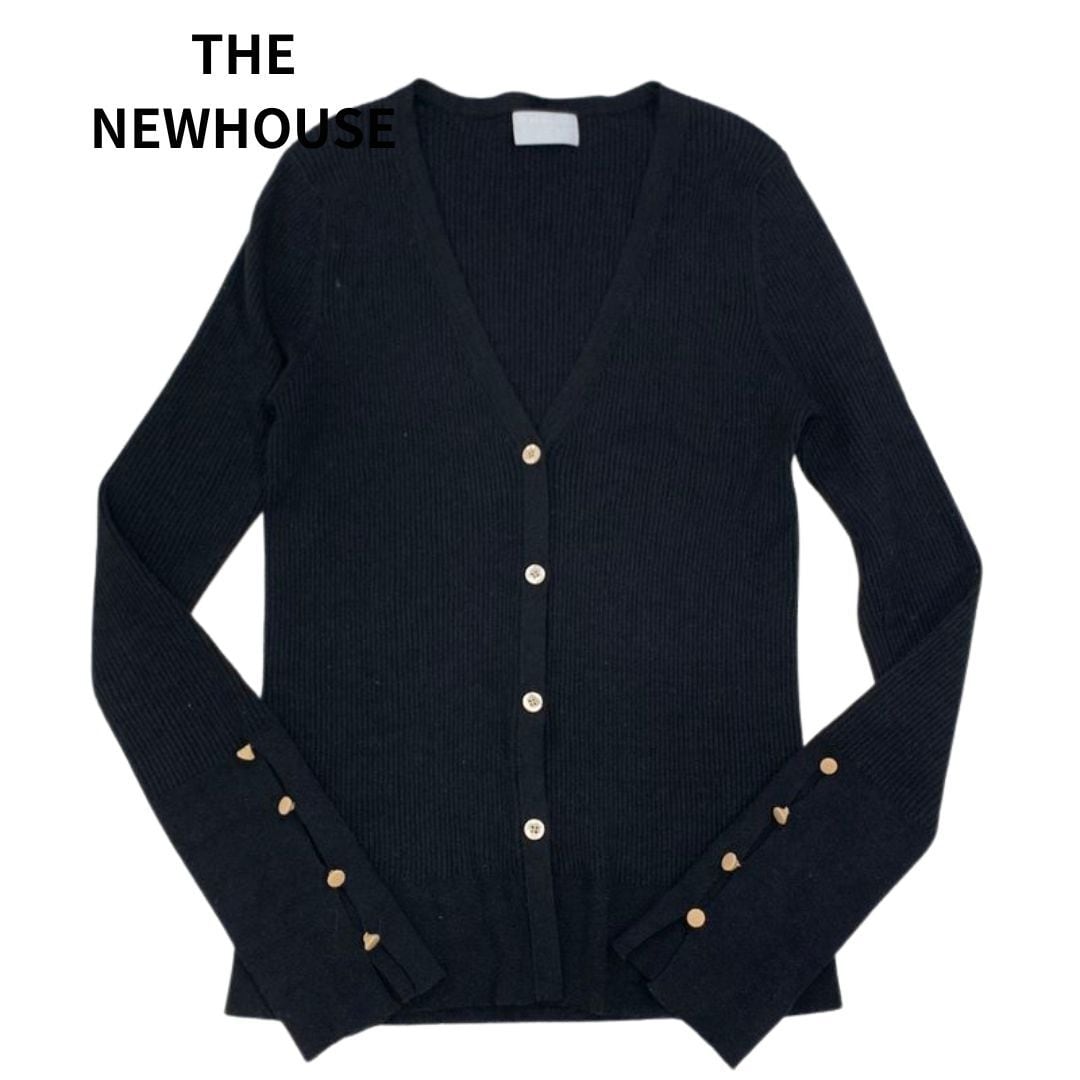 定価4.4万 THE NEWHOUSE AT HEART ザ ニューハウス SOPHIA CARDIGAN ソフィア オーガニックコットン リブニット Vネック カーディガン 黒 S
