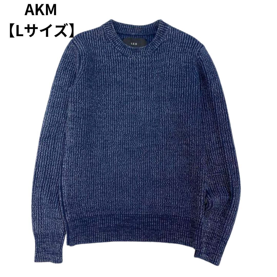 【Lサイズ】AKM エイケイエム インディゴ コットンウール クルーネック ニット セーター /クルー セーター 1PIU1UGUALE3 junhashimoto wjk